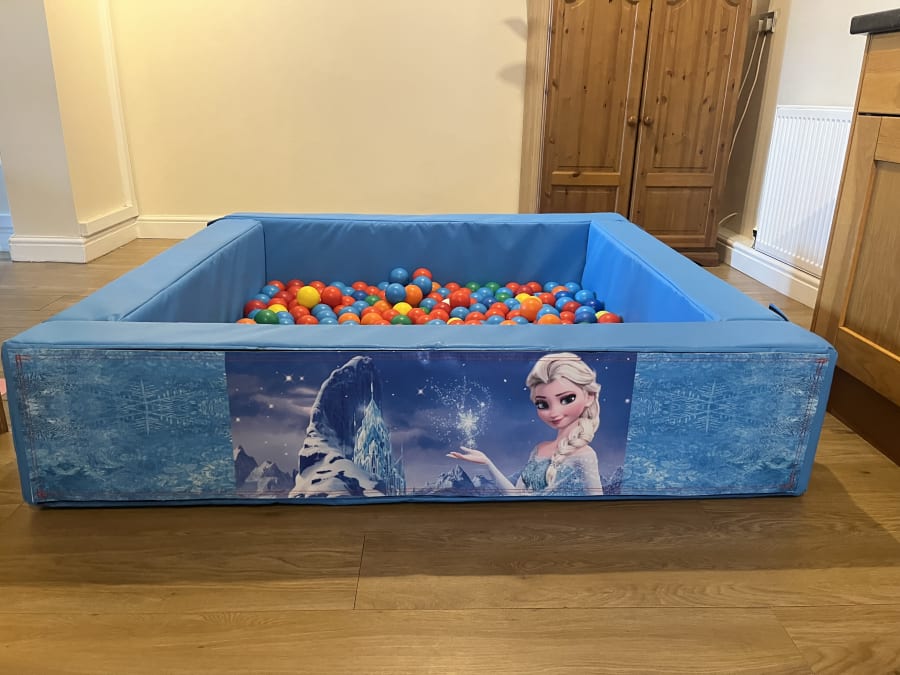 With its vibrant colors and delightful Frozen-themed design, this ball pool will capture the imaginations of children and transport them to the magical kingdom of Arendelle. The walls of the ball pool are adorned with beloved characters like Elsa, Anna, Olaf, and more, creating a truly immersive experience.
